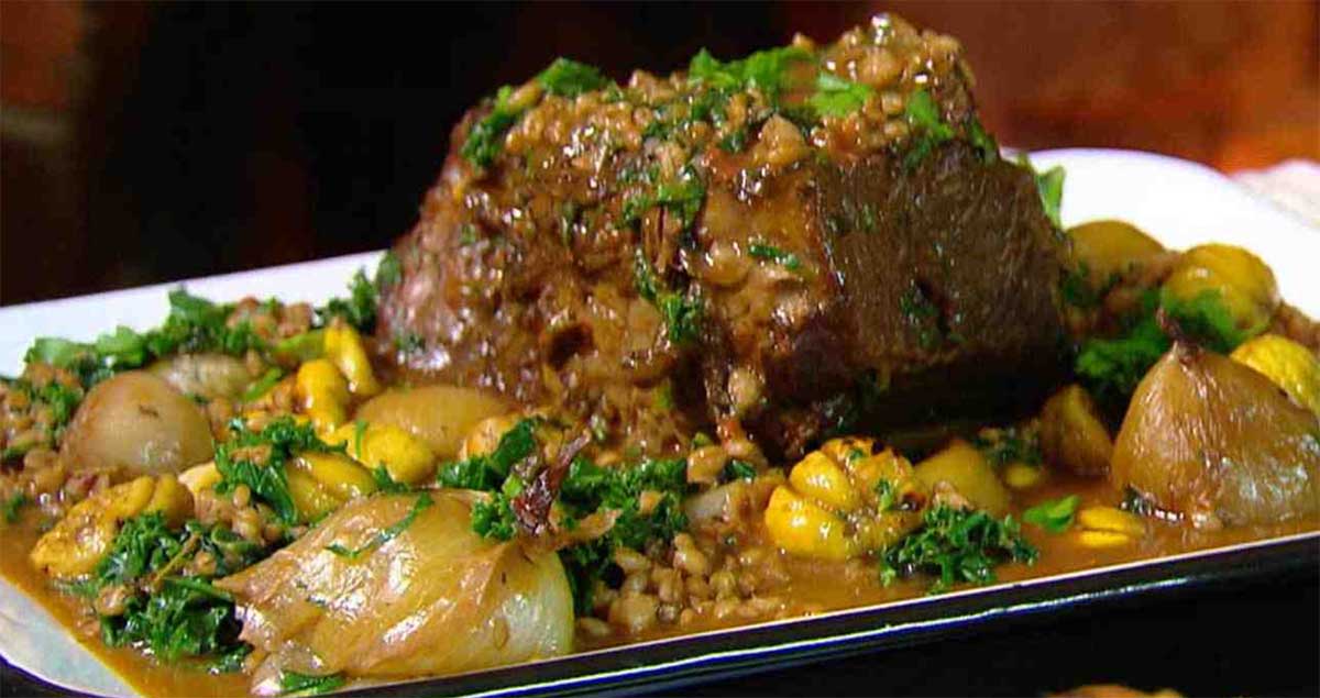 - Meanwhile, score the chestnuts then cook over a fire until the skins crack. Peel, and cut into quarters. Add to the beef, then cook for 1 more hour.